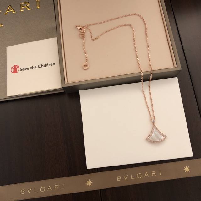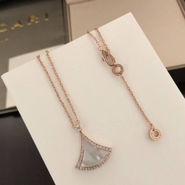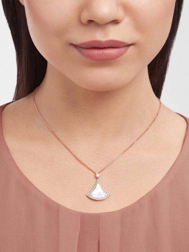 Divas' Dream 18K rose gold necklace exquisitely interprets Italian style, paying tribute to charming women with a unique Roman spirit. Inspired by feminine elegance, it features a mother-of-pearl fan-shaped silhouette outlined with pav