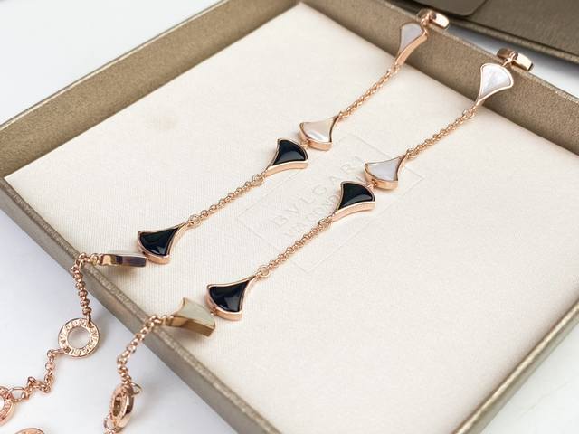 Bvlgari Black Onyx and White Mother-of-Pearl Fan-Shaped Bracelet - Absolutely stunning! This Bvlgari Diva series mini-dress bracelet features a creative fan design paired with black onyx and white mother-of-pearl, exuding elegance and approachability