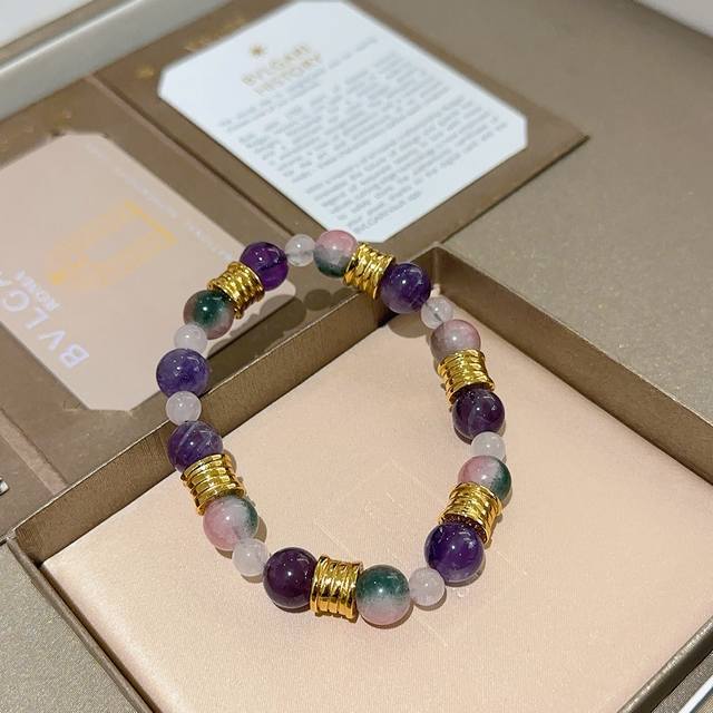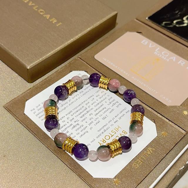 Bvlgari Divas' Dream series natural amethyst bracelet in V gold. Perfect condition, impeccable details, and a unique, flawless color. Adorned with a classic ring design, it is simple yet elegant and eye-catching. The V gold and handcrafted construction enhance your complexion, making it refined and charming on the wrist. Unisex Bvlgari bracelet. Size: 18 x 20 x 22 x 24 cm.
