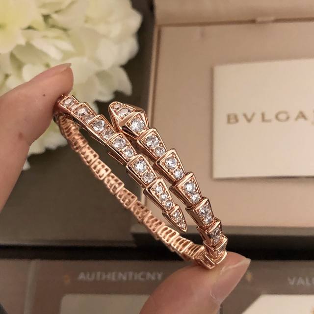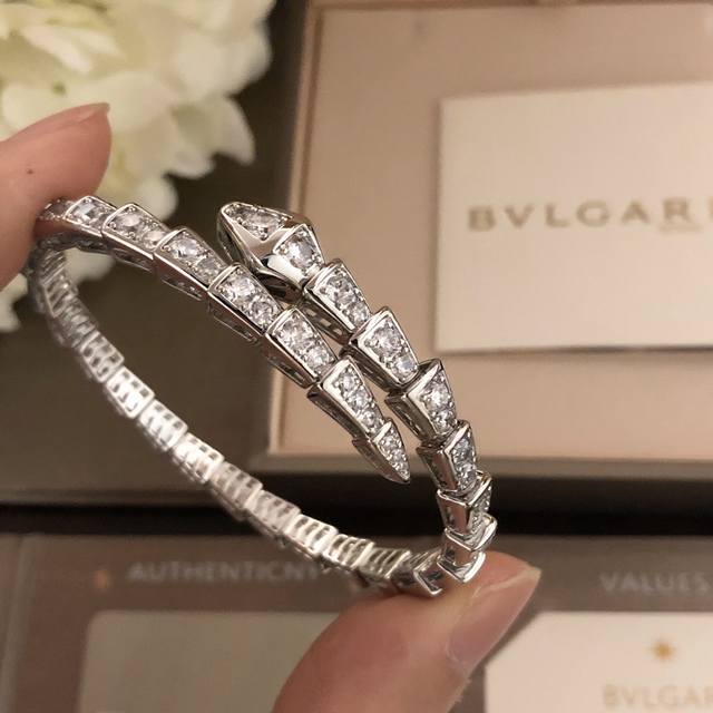Bvlgari Serpenti Bangle. This exquisitely designed Serpenti bracelet pays homage to its serpentine nature, capturing its allure, seduction, and captivating sensuality. The bangle features pav