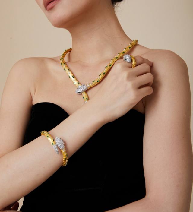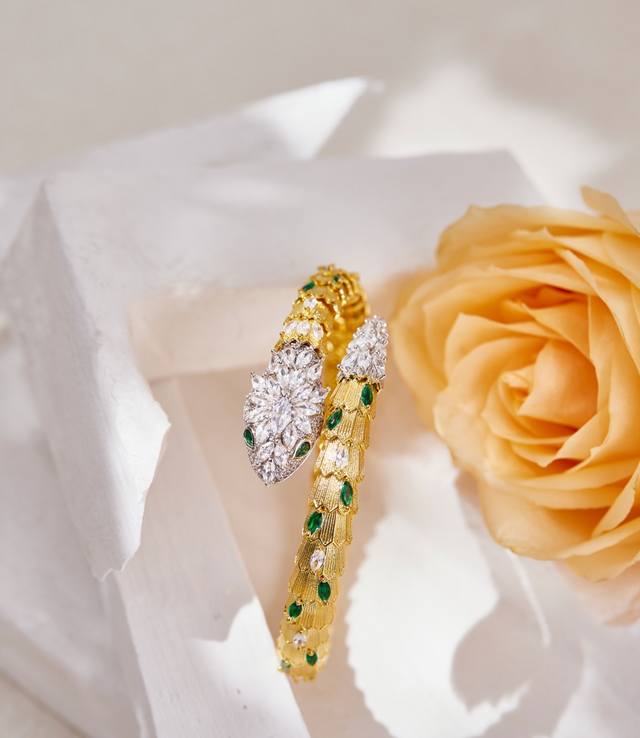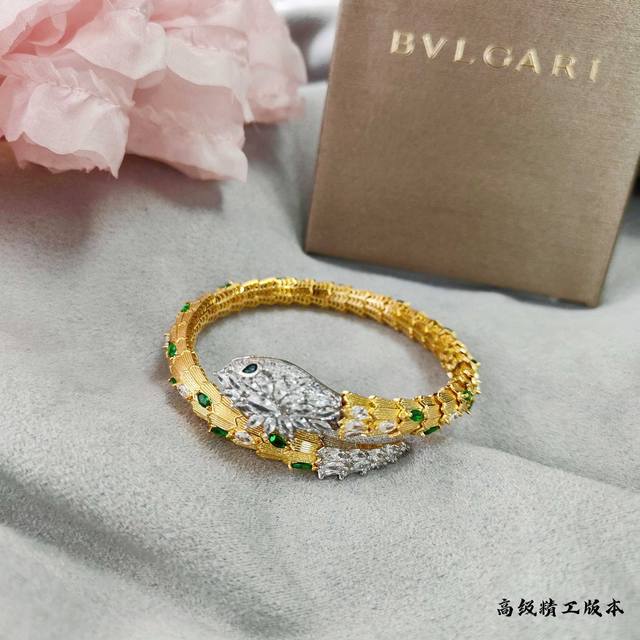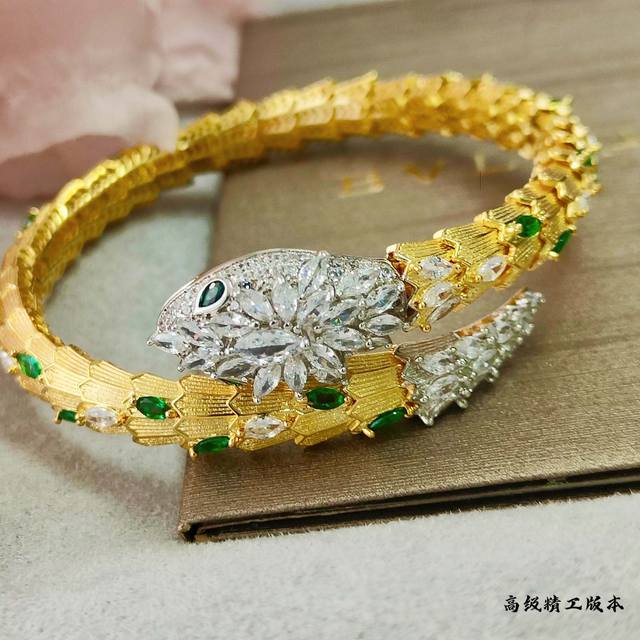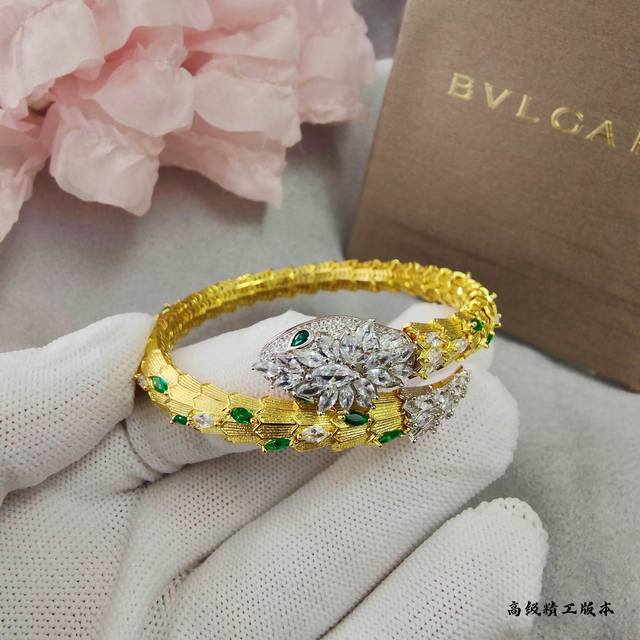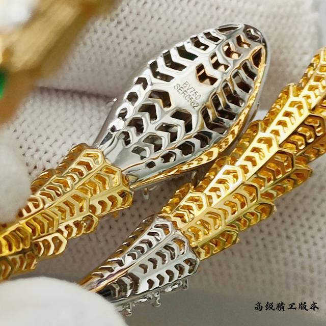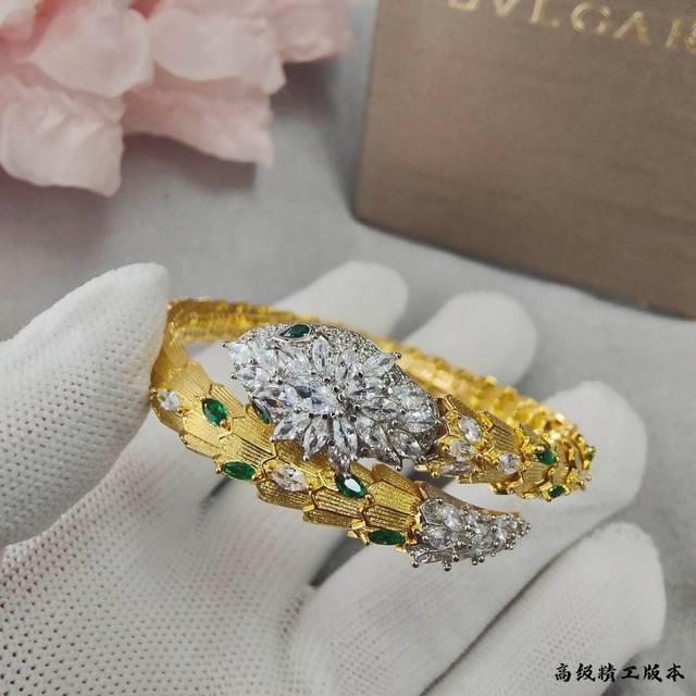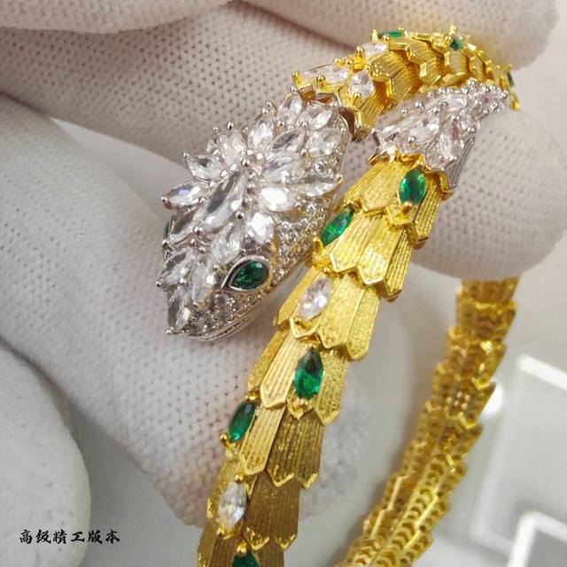 High-quality replica Bulgari large green-eyed princess snake bracelet, a fashionable and high-end luxury snake upgraded version of the popular Bulgari snake bracelet. Features imported high-carbon diamonds, a perfectly hollowed-out inner circle, a gold-plated mesh base, and a lifelike shape. A true replica .