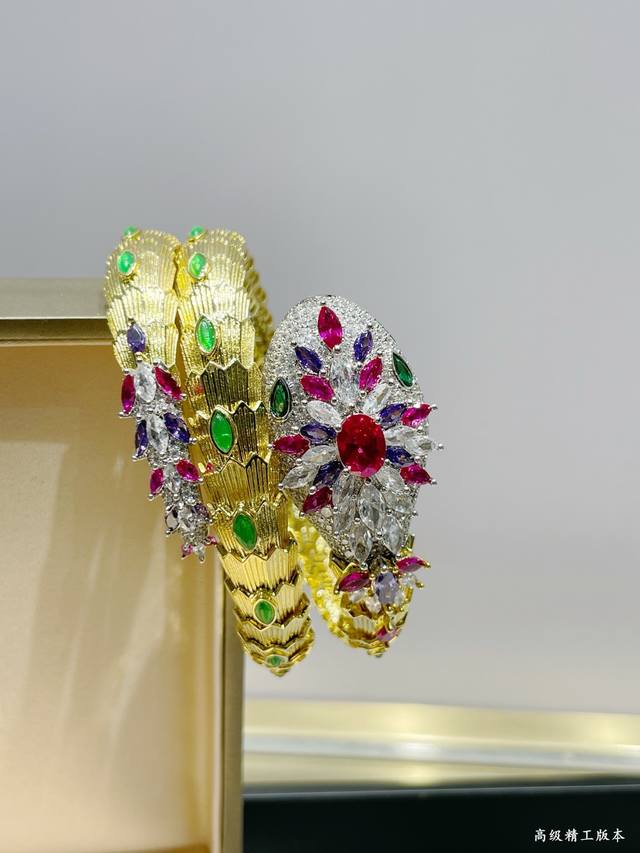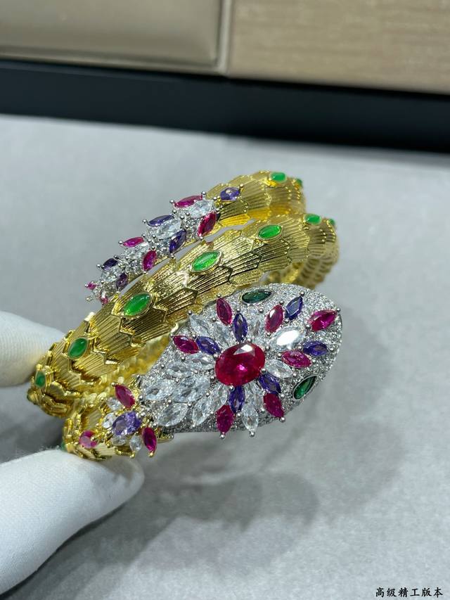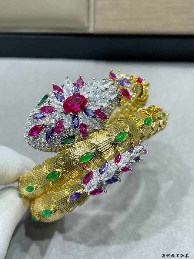 Real price sub-gold material Bulgari red diamond princess snake bracelet, fashionable high-end luxury snake upgraded version Bvlgari popular imported high-carbon diamond, the inner ring is perfectly hollowed out, the bottom of the net is electroplated with real gold, the shape is lifelike, the original is engraved