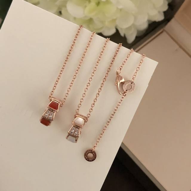 The Bulgari Servant Enti series snake necklace is here! The combination of red agate and diamonds is absolutely irresistible! This one is nearly 40,000 RMB in the boutique, but I bought it! The snake pendant has a simple design, super practical and versatile! It's 18K pure gold with diamonds, and the snake ring symbolizes "protection." The chain has three adjustable circular sections, and it comes with a complete stamp. It's made of rose gold, a classic and versatile piece. (Premium version, standard version)