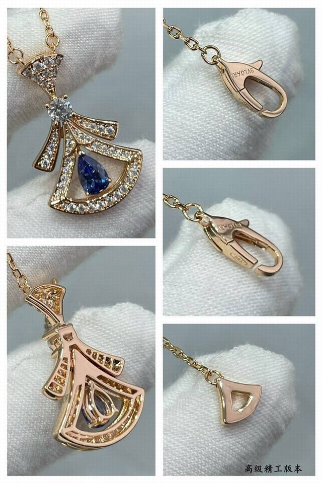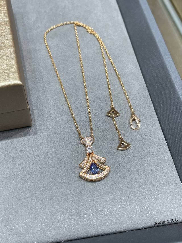 V gold-plated Bulgari diamond blue fan-shaped skirt necklace, inlaid with a central brilliant blue zircon and brilliant-cut diamonds, and decorated with dense diamonds, full of feminine charm praises the ultimate elegance of Italian style. High-end custom micro-inlay craftsmanship is synchronized with the original single. The real thing is very textured. Please cherish the good goods