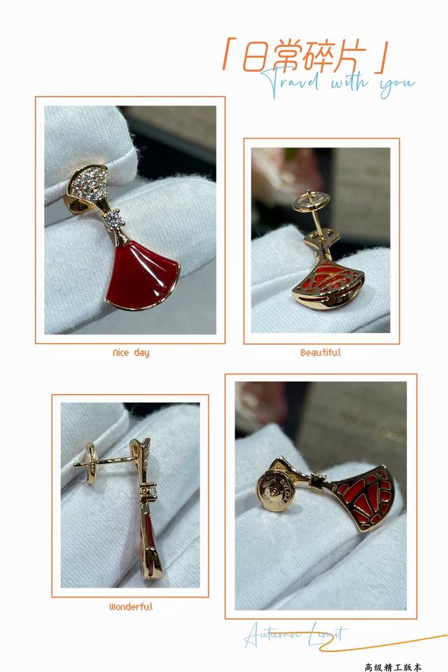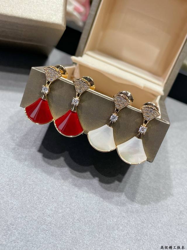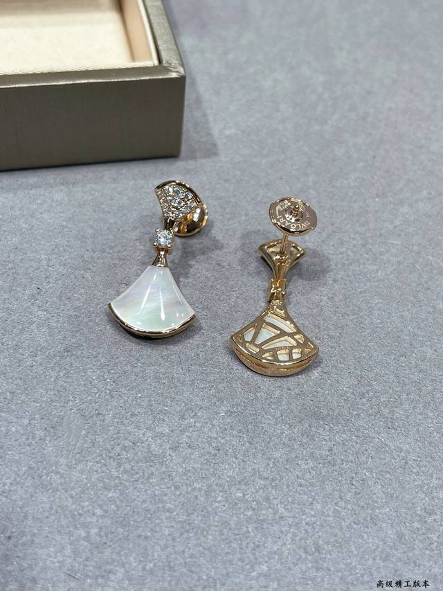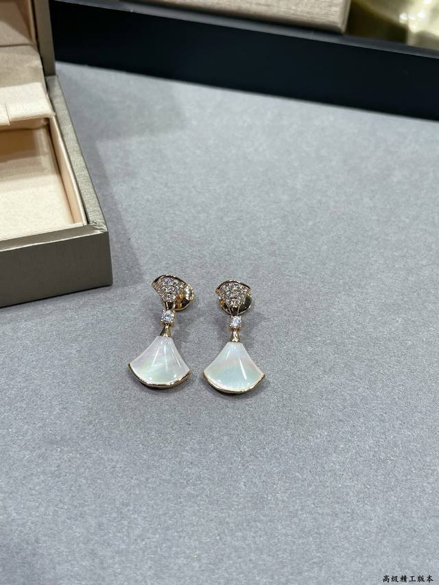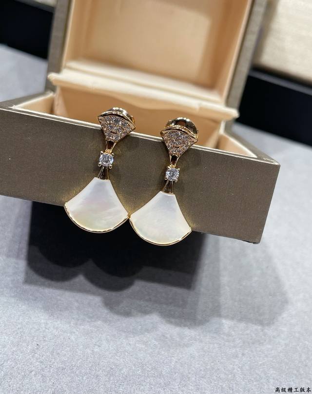 V gold-plated Bulgari mother-of-pearl headband and diamond fan-shaped skirt earrings. Divas' Dream series Chinese Valentine's Day limited edition! High-end custom popular counter 1:1 original luxury beautiful evening party essential price p beautiful noble atmosphere very beautiful and versatile
