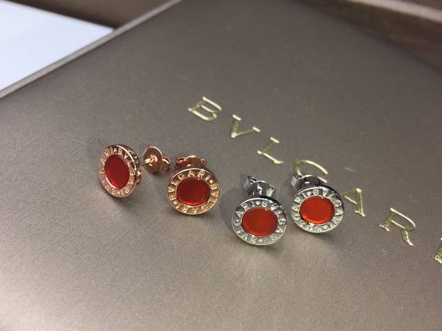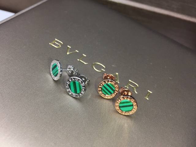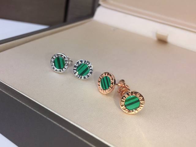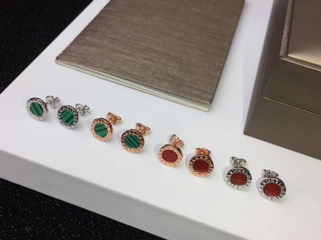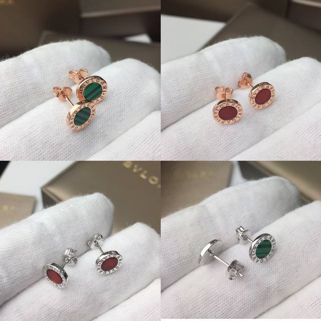 Bvlgari Red Agate and Malachite Earrings, Rose Gold, 9mm Diameter, Unisex, Matte Gold Material + 925 Sterling Silver Needles (Hypoallergenic), Inlaid with Red Agate and Malachite [Spinning] Exclusive Real Photos Show Craftsmanship p DDD