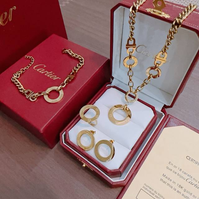 Bracelet Ddd New Cartier set necklace, earrings, bracelet, and ring from Thai steel. The unique color is absolutely impeccable, adorned with a classic ring design. Simple yet elegant and eye-catching, the combination enhances your complexion and looks refined and charming on the wrist. DDD