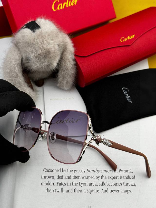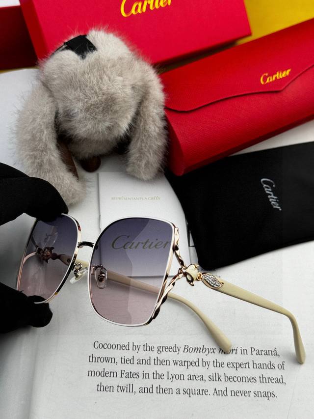 2025 Spring New Cartier Top Luxury Model Women's Acetate Original Sunglasses Personalized Perfect Face Shaping and Eye Protection Create a Light Luxury New Trend Fashionable and Versatile Fox Head [Love] Latest White and Rich Beauty [Kiss] Comfortable to Wear and Suitable for All Face Shapes Model: Ka5638