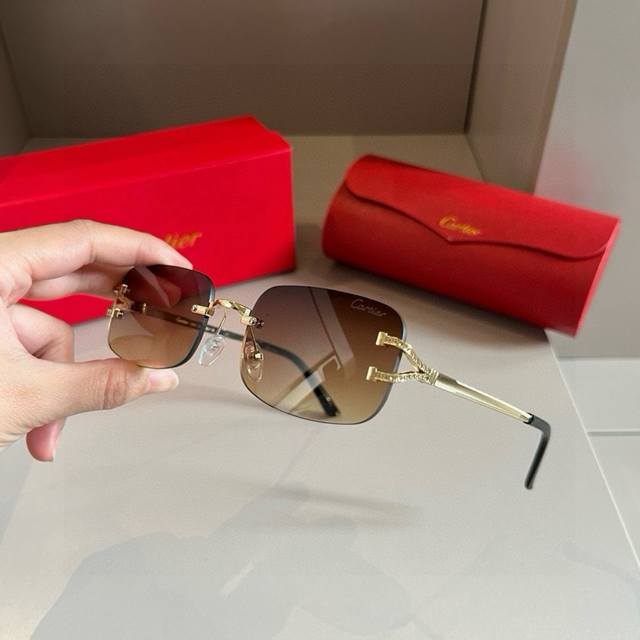 Cartie* Exquisite Cartie Sunglasses, made of metal, PC, with frameless, ultra-lightweight design and exquisite electroplating. New arrival, official website original, super high quality, a symbol of ultra-high-end luxury.