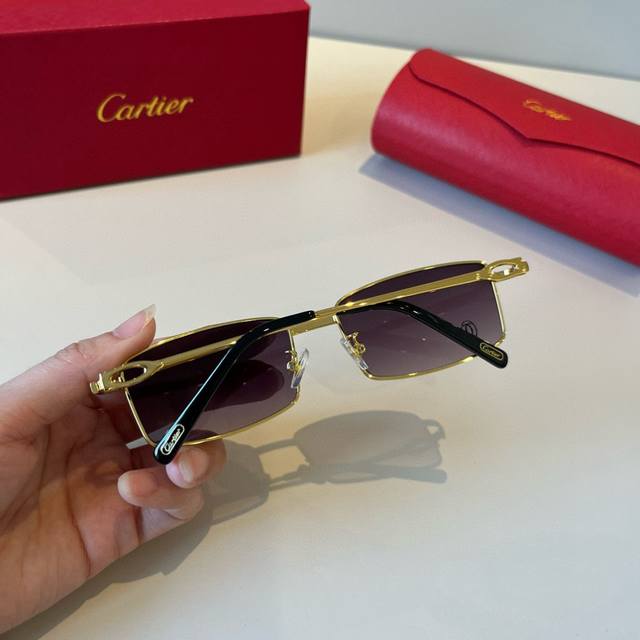 Cartie*Cartier precious sunglasses, metal material, PC temples, frameless, ultra-light electroplating craftsmanship, exquisite temperament, new model just arrived, official website original, ultra-high quality, ultra-high-end luxury symbol