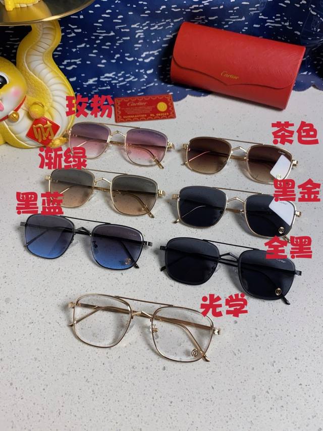 Cartier 2025 European and American high-end women's aviator double-bridge elegant sunglasses European style Xiaohongshu photo aviator sunglasses unisex DDD