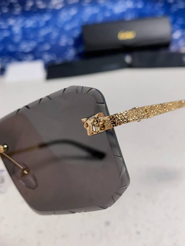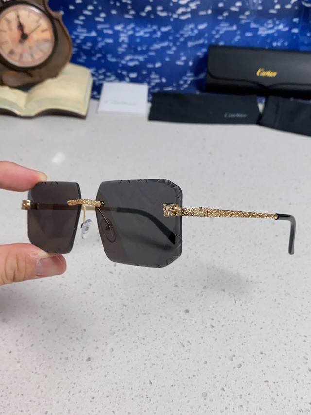 Cartier 2025 New Frameless Beveled Square Panther Head Small Frame Anti-UV Sungl