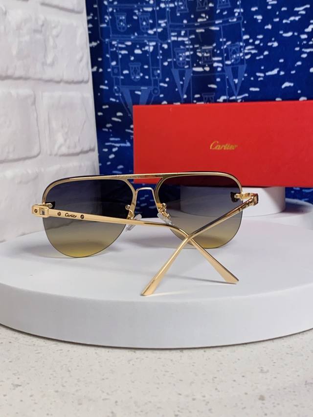 Cartier 2025 New Round Frame European and American Luxury Unisex Flight Frameless Carved Sunglasses European Celebrity Driving Sunscreen Sunglasses DDD