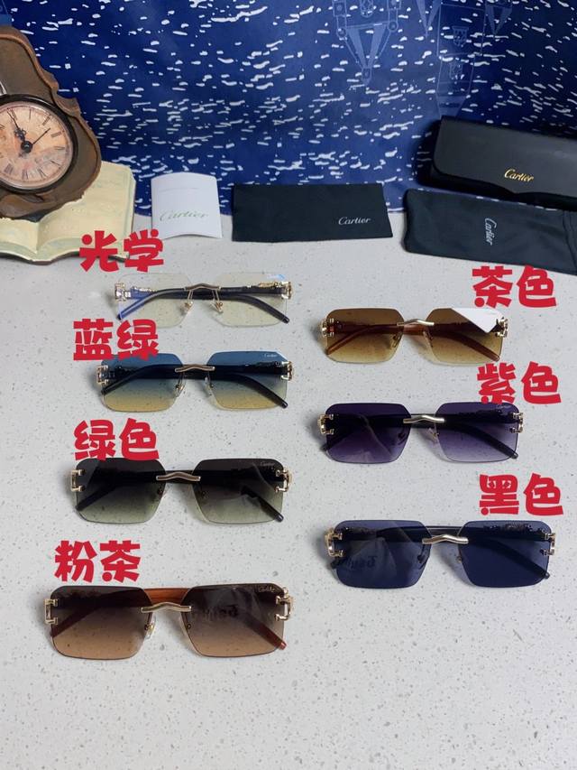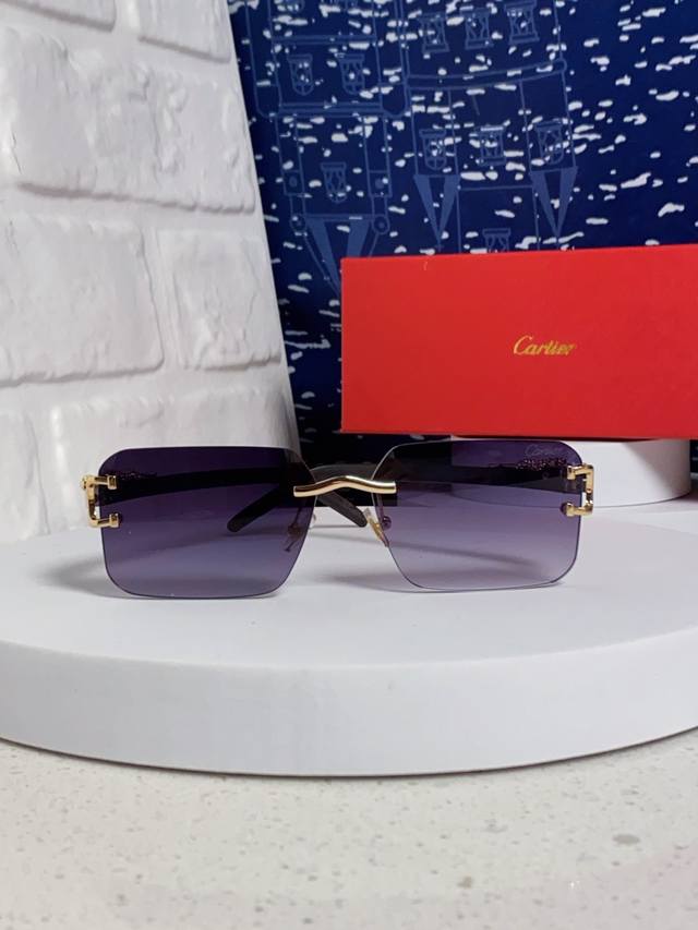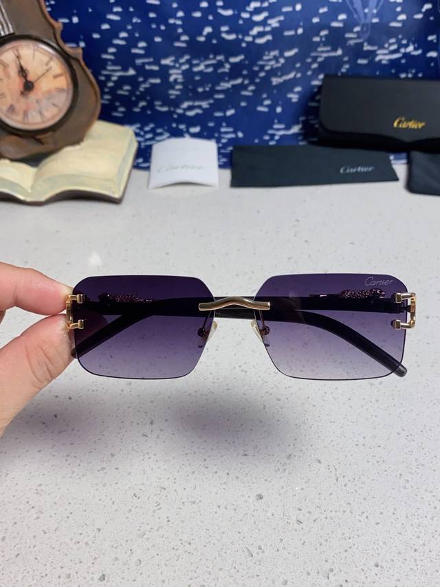Cartier Cartier 2025 new frameless square sunglasses metal leopard legs men and women sunglasses European and American cross-border trend glasses city