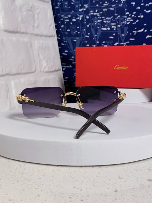 Cartier Cartier 2025 new frameless square sunglasses metal leopard legs men and