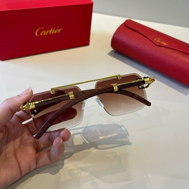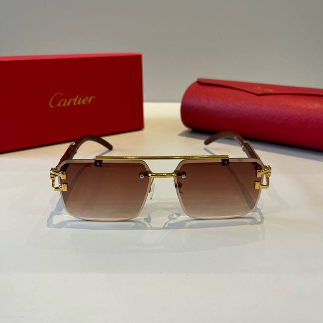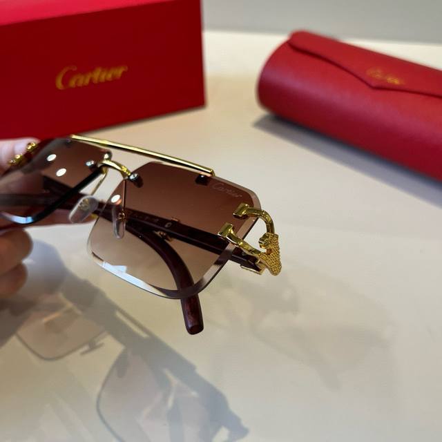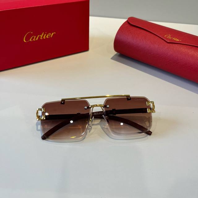 Cartier* Exquisite Cartier sunglasses, made of metal, PC, with frameless, ultra-lightweight, and electroplated finish. New arrival, official website original, super high quality, a symbol of ultra-high-end luxury.