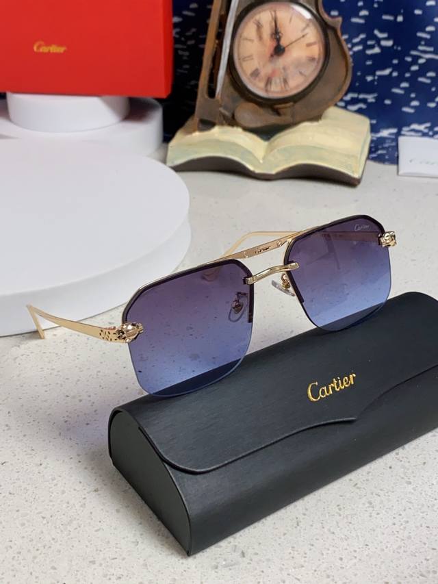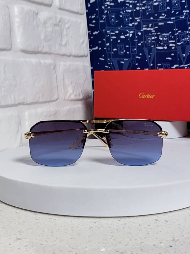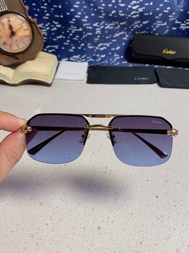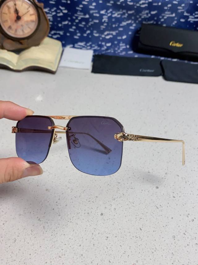 Cartier men's and women's square frame sunglasses, new style metal sunglasses, fashionable, elegant, comfortable, lightweight, exquisite luxury, ultra-lightweight.