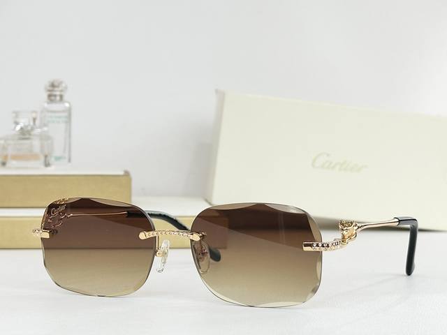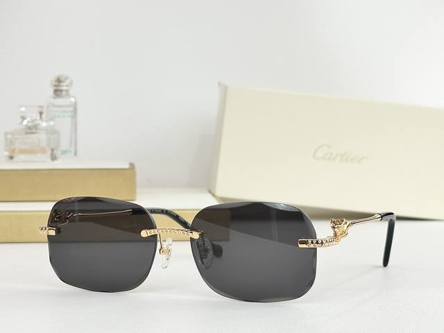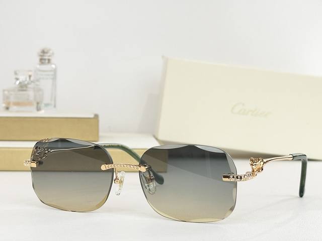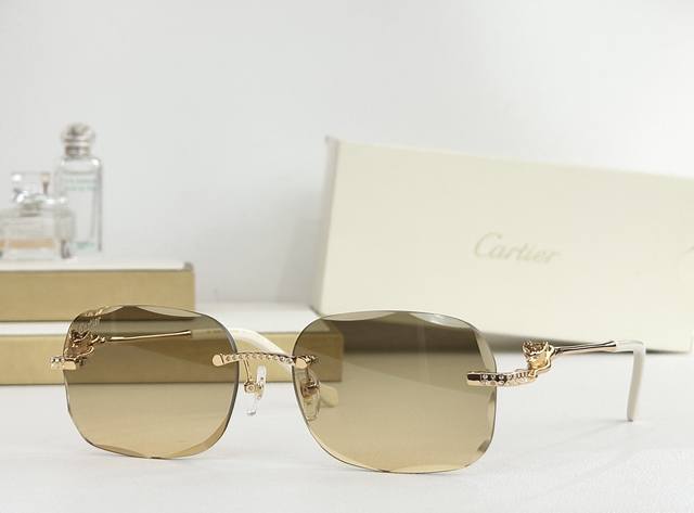 Cartie* Cartier precious sunglasses, metal material, PC temples, frameless, ultr
