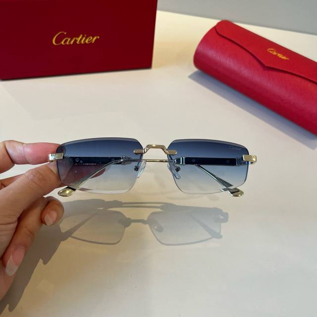 Cartier precious sunglasses, made of metal PC, with frameless, ultra-lightweight frame and exquisite electroplating process, exuding elegance. New arrival, official website original, super high quality, a symbol of ultra-high-end luxury.