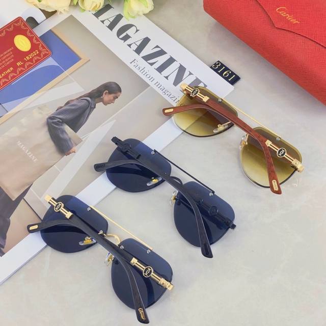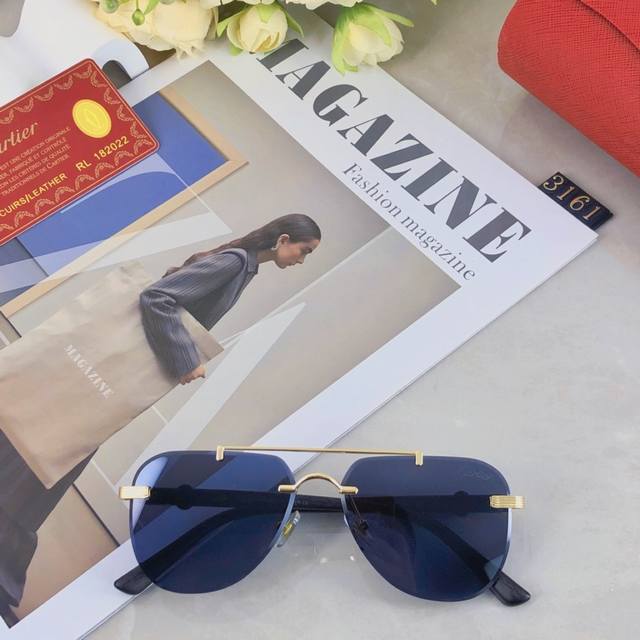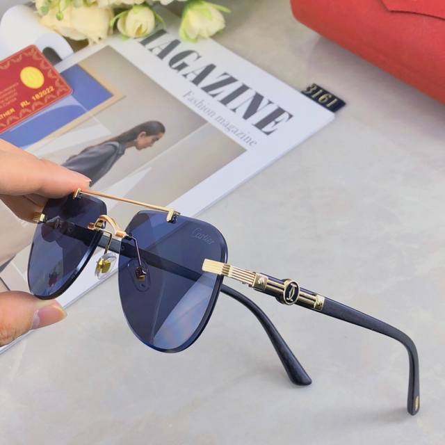 / Cartier toad-shaped sunglasses sun protection fashion Ins frameless sunglasses a