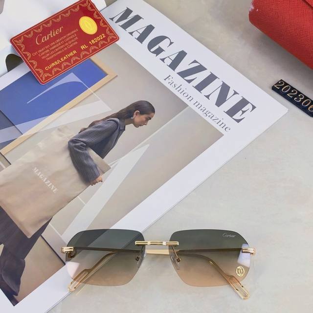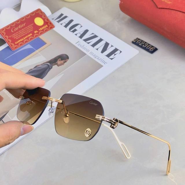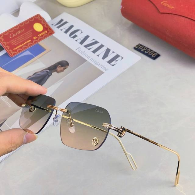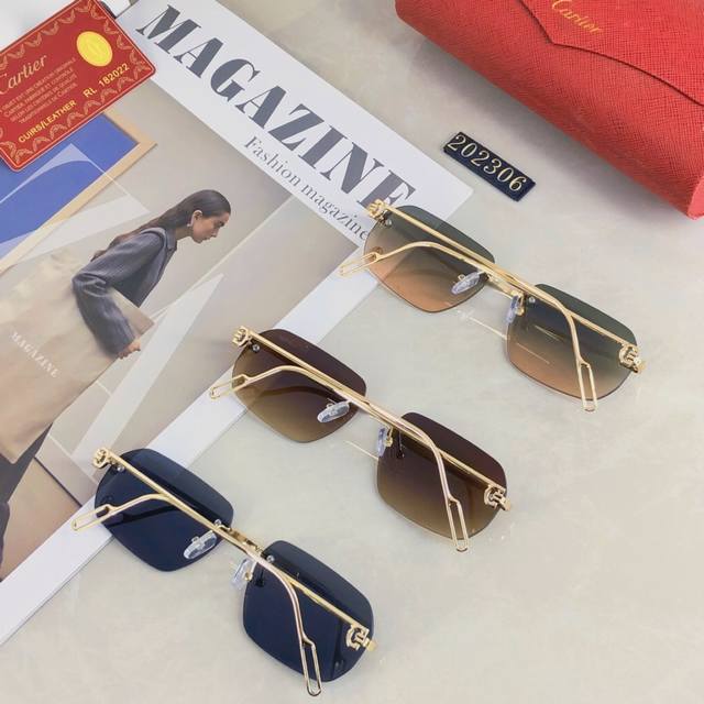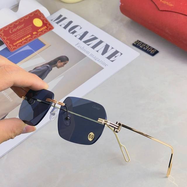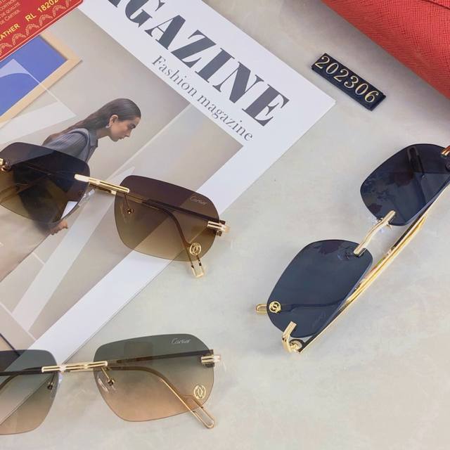 Cartie*Cartier precious sunglasses, metal material, PC temples, frameless, ultra