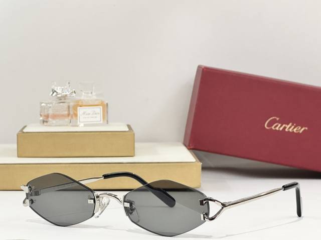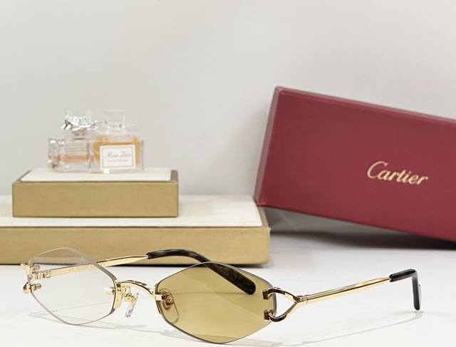 Cartier Cartier 2025 new personality trend frameless sunglasses women's metal te