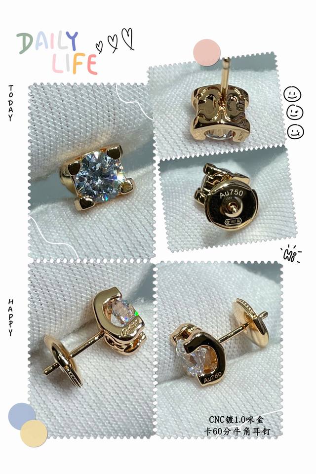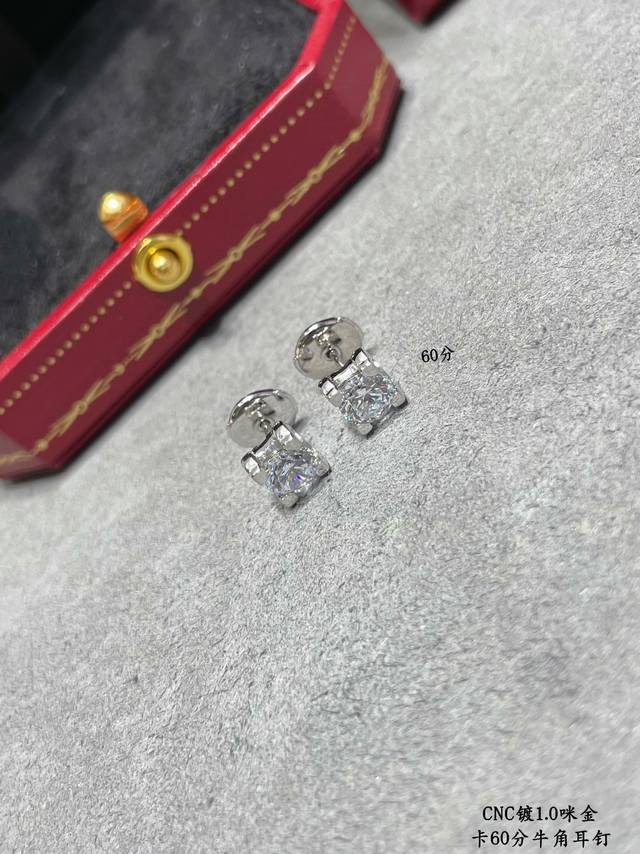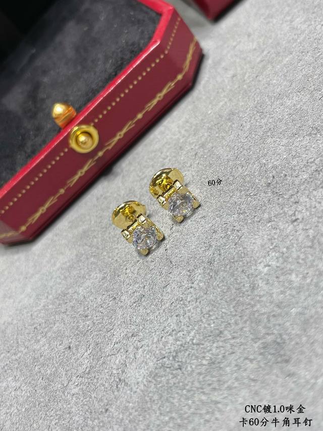 Cartier 60-point bullhorn earrings with gold-plated microfiber, a classic Cartier bullhorn design! No further introduction needed! In stock with stunning high-carbon diamonds