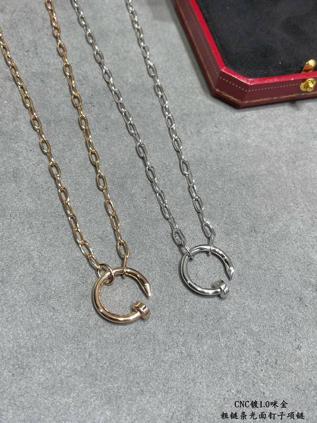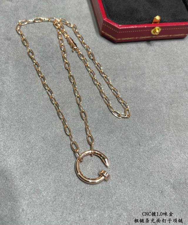 Cartier CNC chunky chain polished nail necklace in 18K gold. Crafted to the specifications of an 18K genuine gold item. This is an exclusive order; the craftsmanship is exceptionally detailed and surpasses all other versions on the market. Elegant and versatile.