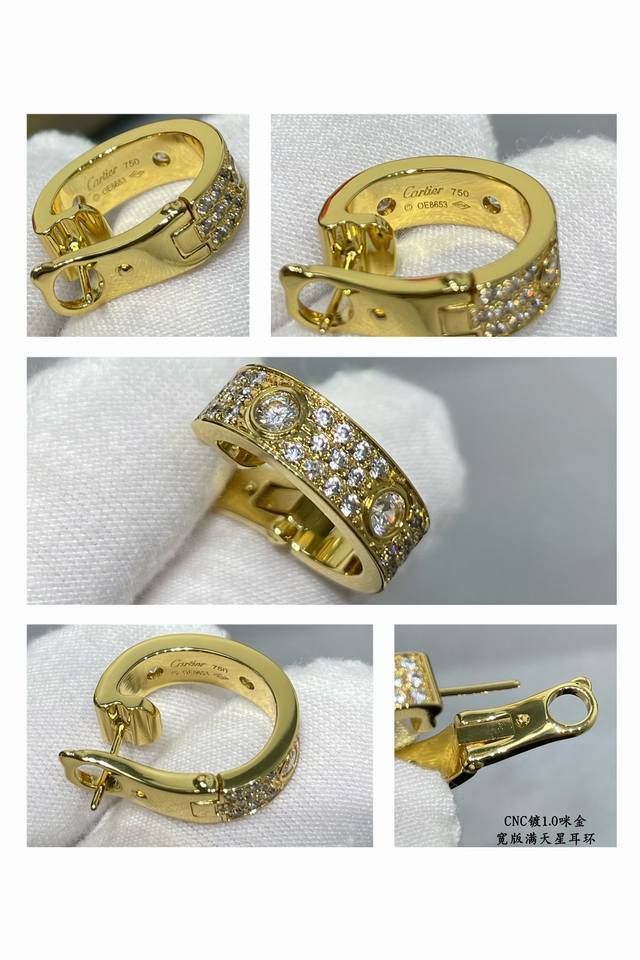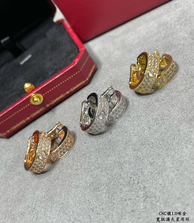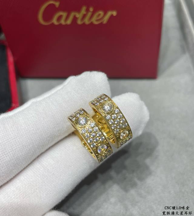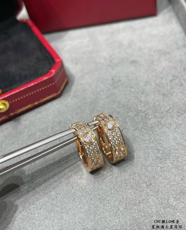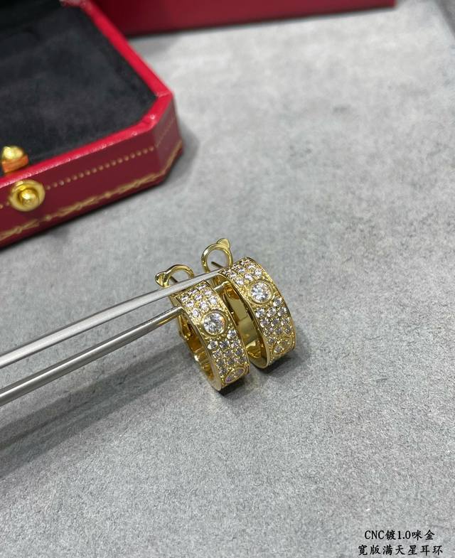 Cartier Cnc wide-striped earrings in gold, a classic design, sourced directly from the manufacturer. The most iconic style in the Cartier Cnc series, needing no further introduction. German import, high-end, available in three colors.