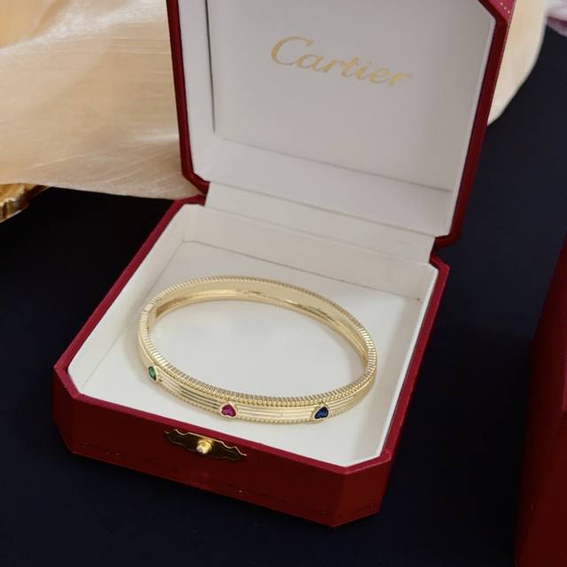 Cartier Colored Diamond Bangle, High-End Custom Version. Featuring diamond-set craftsmanship and V-gold material, this classic yet fashionable style reconstructs the aesthetics of love with sharp lines! Breaking with convention, the diamond-set design achieves a pinnacle of sophistication. No need for ostentatious displays; love should remain pure and unadulterated. Cartier's panther series bracelet is a timeless classic, loved by numerous celebrities and influencers, and is suitable for both men and women of all ages! Wear it and you'll be the center of attention!