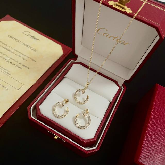 Cartier diamond necklace and earrings, 65, a high-end custom version. Diamond-inlaid craftsmanship, V-gold material, classic and fashionable, sharp lines reshape the aesthetic of love! Breaking convention, the diamond-inlaid design creates a sense of luxury. Love should remain pure without extravagance. Cartier is loved by many celebrities and influencers. The Leopard series bracelet is a timeless classic and suitable for men and women of all ages! Wear it and you will be the center of attention!