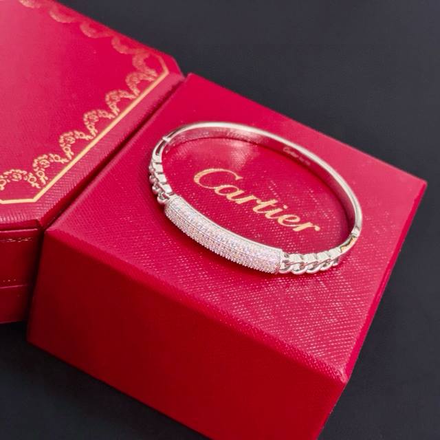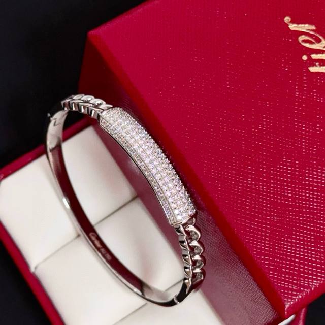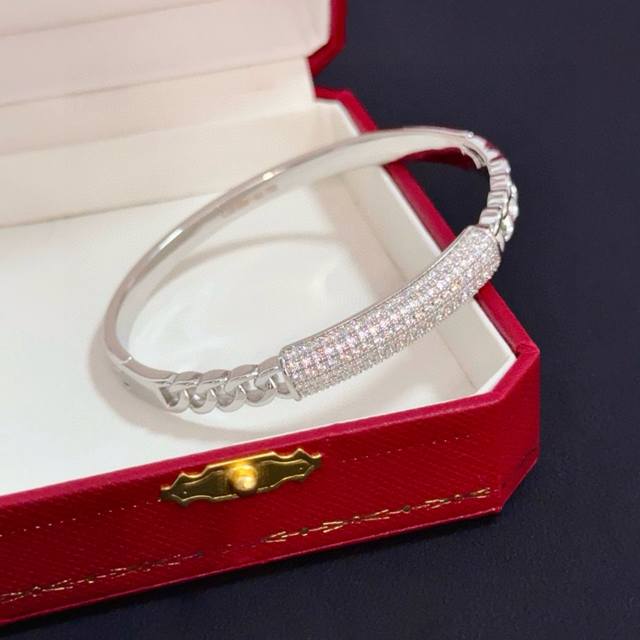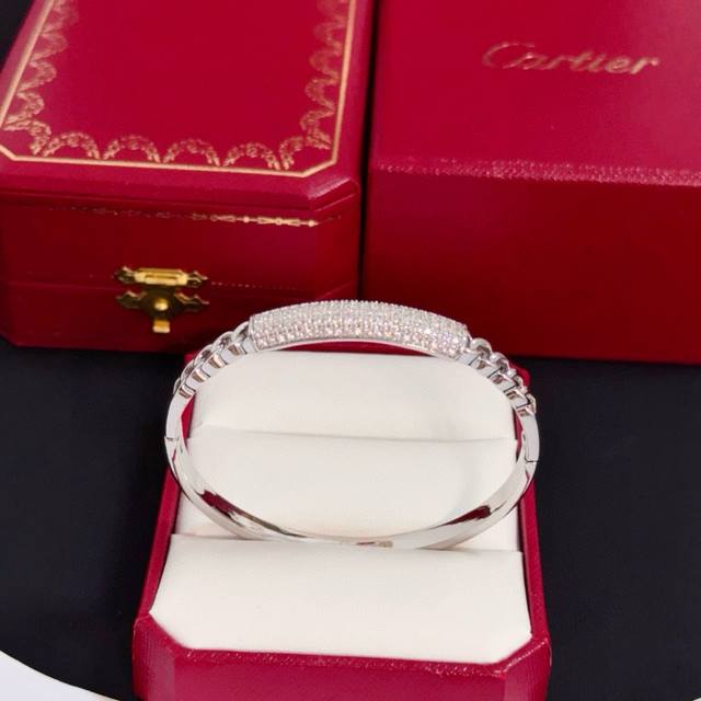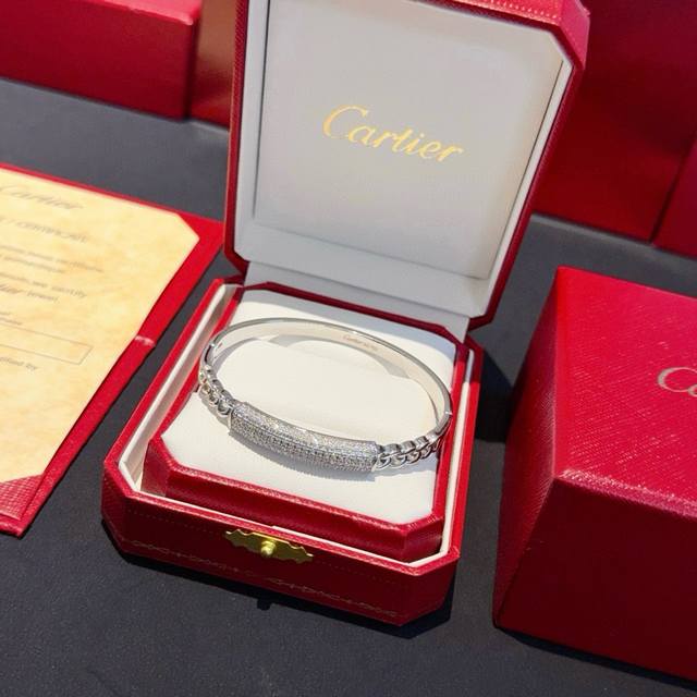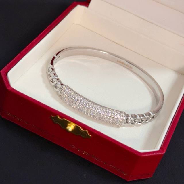 Cartier Diamond-Set Bangle, High-End Custom Version. Diamond setting craftsmanship, V-gold material. Classic yet fashionable style, reconstructing the aesthetics of love with sharp lines! Breaking with convention, the diamond-set design achieves a pinnacle of sophistication. No need for ostentatious displays; love should be pure and unadulterated. Cartier's panther series bangles are beloved by many celebrities and influencers; they are timeless classics, suitable for both men and women, and regardless of age! Wear it and you'll be the center of attention!