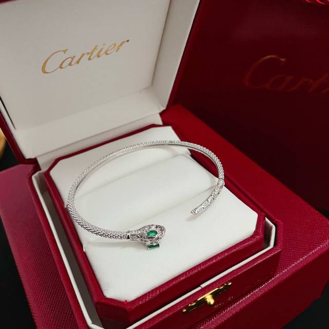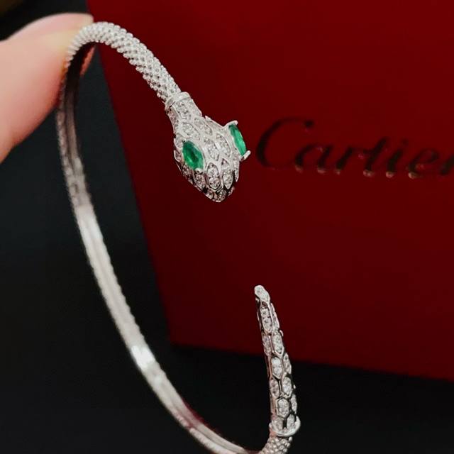 Cartier Diamond-Set Serpent Head Bangle, High-End Custom Version. Diamond setting craftsmanship, V-gold material. Classic yet fashionable style, reconstructing the aesthetics of love with sharp lines! Breaking with convention, the diamond-set design achieves a pinnacle of sophistication. No need for ostentatious displays; love should be pure and unadulterated. Cartier is loved by many celebrities and influencers. The panther series bangles are timeless classics, suitable for both men and women, and regardless of age! Wear it and you'll be the center of attention!