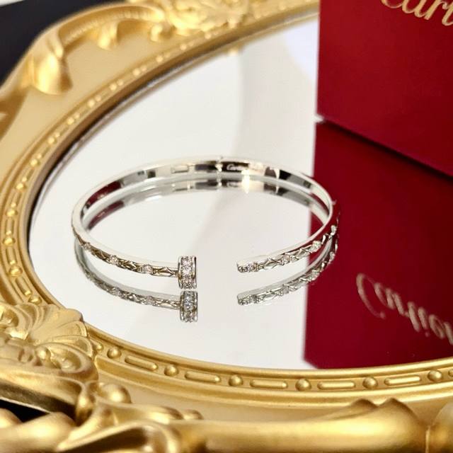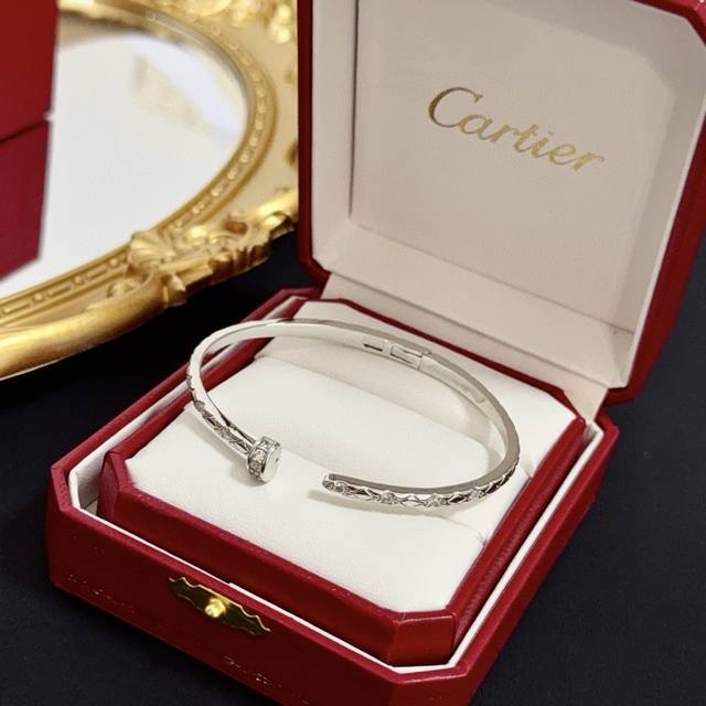 Cartier diamond-studded nail bracelet, a high-end custom version, inlaid with diamonds, made of V-gold, classic and fashionable, with sharp lines reshaping the aesthetics of love! Breaking the mold, the diamond-studded design creates a sense of luxury. Love should remain pure without extravagance. Cartier is loved by many celebrities and influencers. The Leopard series bracelet is a timeless classic and suitable for men and women of all ages! Wear it and you will be the center of attention!