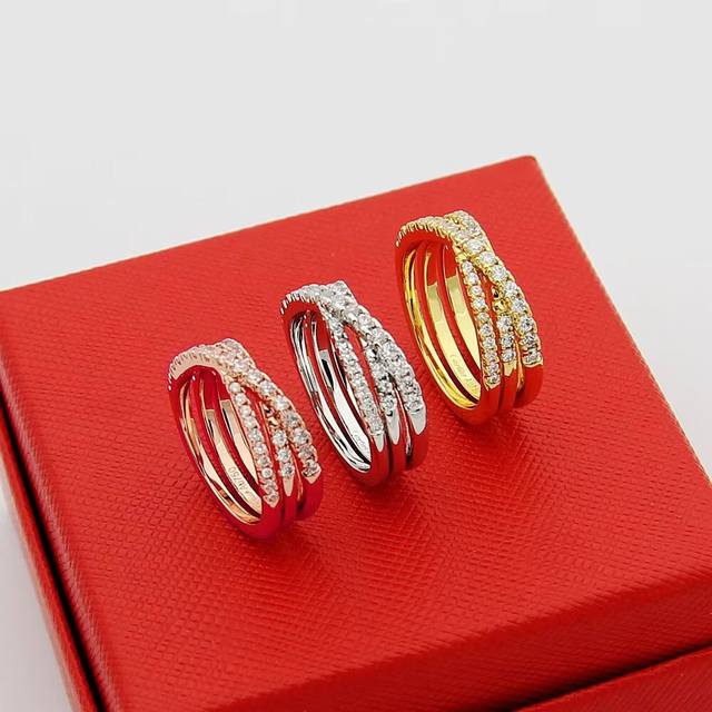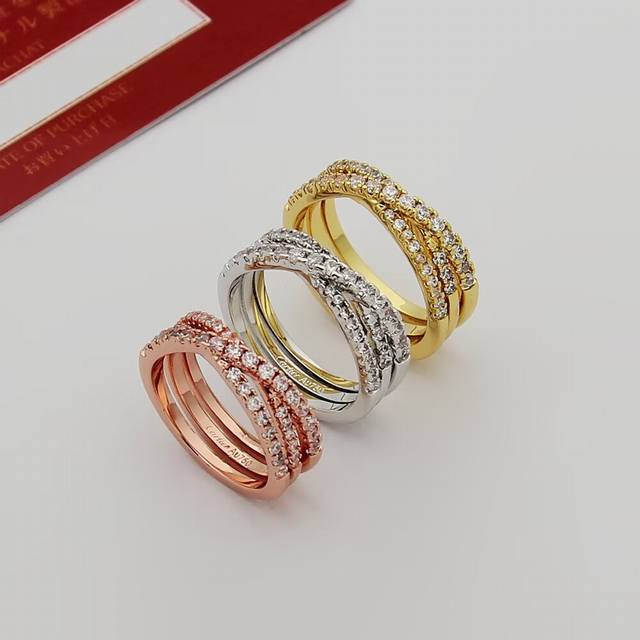 Cartier Etincelle De series three-ring full diamond ring, 18K gold plated with h