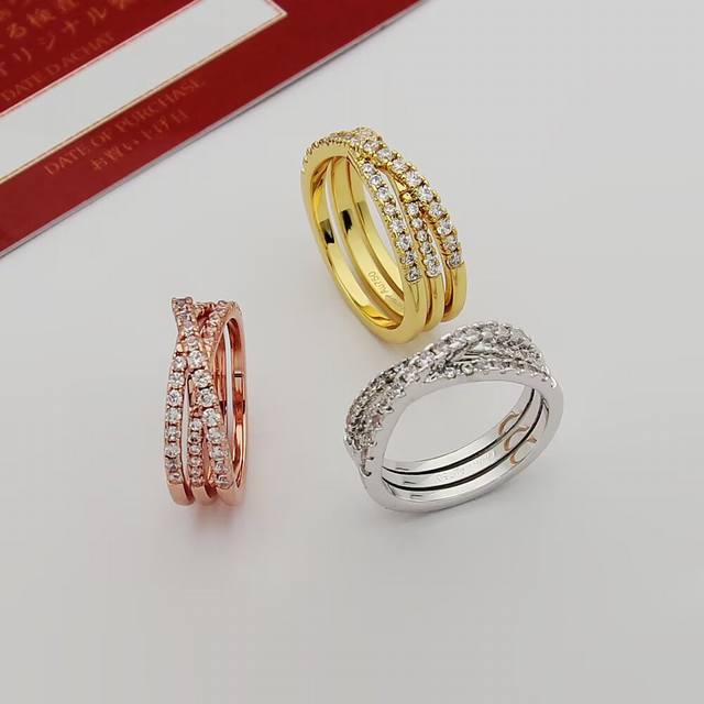 / Cartier Etincelle De series three-ring full diamond ring, 18K gold plated with h
