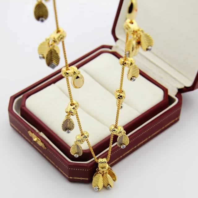 Cartier Grain De Cafe Necklace, a coffee bean necklace with tassels and multiple accessories. This necklace transforms the ordinary into something precious. The rich, rounded gold "beans" are adorned with sparkling diamonds, radiating a delicate and soft brilliance. (Necklace