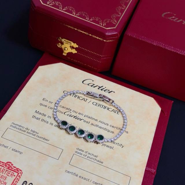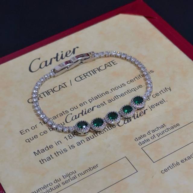 Cartier Green Diamond Bracelet, High-End Custom Version. Featuring a diamond-set design and V-gold material, this classic yet stylish bracelet uses sharp lines to reconstruct the aesthetics of love! Breaking with convention, the diamond-set design achieves a pinnacle of sophistication. No need for ostentatious displays; love should remain pure and unadulterated. Cartier's panther series bracelets are beloved by numerous celebrities and influencers, and are timeless classics suitable for both men and women of all ages! Wear it and you'll be the center of attention!