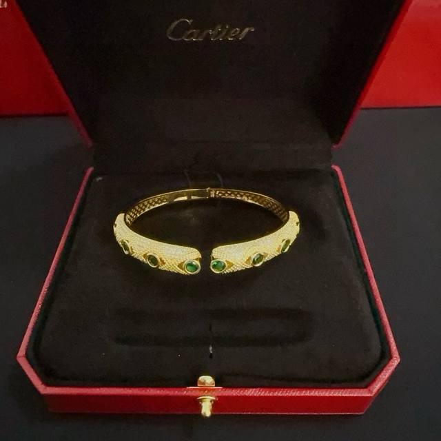 Cartier Panther Diamond Bangle, High-End Custom Version. Featuring a classic yet fashionable design with sharp lines, this V-gold bracelet redefines the aesthetics of love. Breaking with convention, the diamond setting elevates its sophistication. No need for ostentatious displays; love should remain pure. Loved by numerous celebrities and influencers, the Cartier Panther bracelet is a timeless classic, suitable for both men and women of all ages! Wear it and you'll be the center of attention!