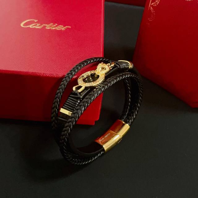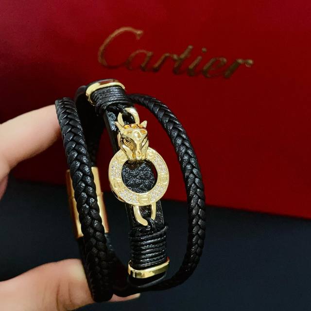 Cartier Panther Head Diamond-Encrusted Leather Cord Bangle, High-End Custom Version. Diamond-encrusted craftsmanship, V-gold material. Classic yet fashionable style, reconstructing the aesthetics of love with sharp lines! Breaking with convention, the diamond-encrusted design achieves a pinnacle of sophistication. No need for ostentatious displays; love should be pure and unadulterated. Cartier is beloved by many celebrities and influencers. The Panther series bracelet is a timeless classic, suitable for both men and women, and regardless of age! Wear it and you'll be the center of attention!