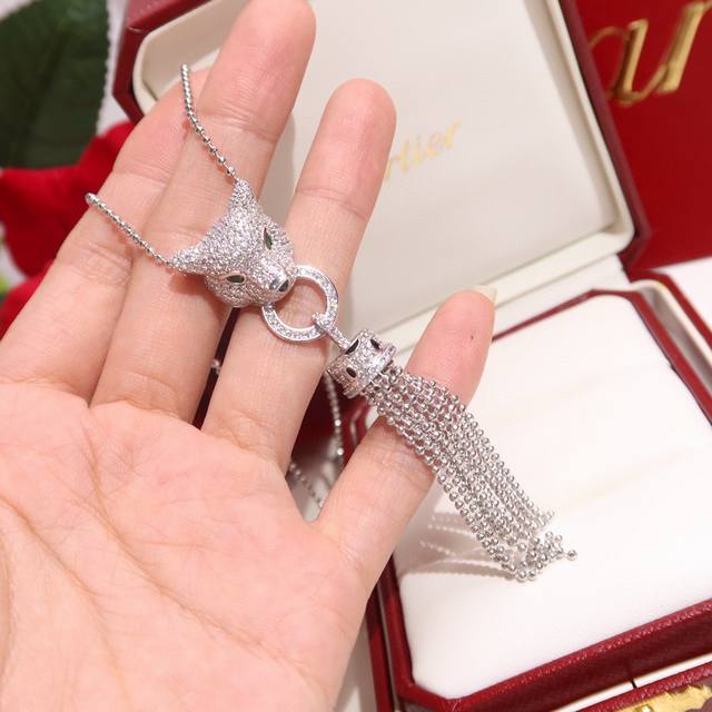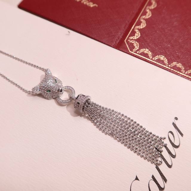 Cartier Panther - Latest Hot Selling Cartier Panther Head Emerald Tassel Necklace. Exquisitely crafted with hundreds of cubic zirconia and emeralds, the entire head is incredibly lifelike, exuding elegance and power. The panther's dynamic pose is remarkably realistic with a 3D effect. Available in three colors (European and American styles).