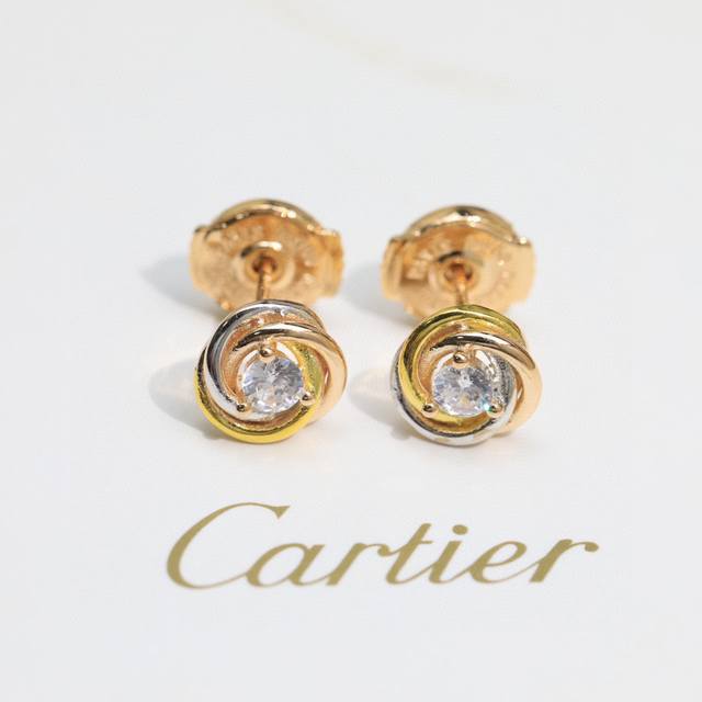 Cartier small three-color three-ring earrings. S925 sterling silver material, exquisite craftsmanship with flying saucer earplugs, exquisite and versatile, popular