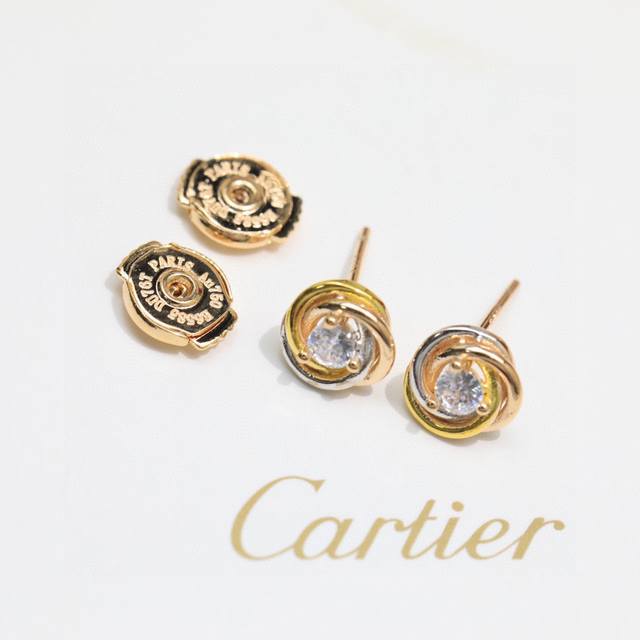Cartier small three-color three-ring earrings. S925 sterling silver material, e