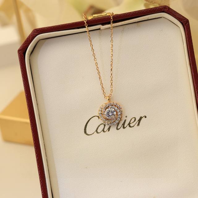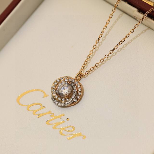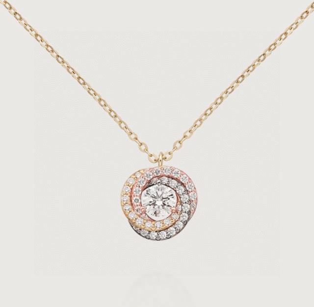 Cartier white diamond three-color three-ring necklace shipped S925 sterling sil