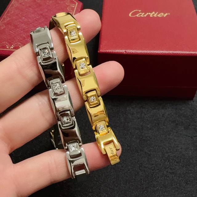 Cartier's classic large white diamond bracelet with gold and silver chains, large size, 21cm, unisex tank chain, suitable for both men and women! Thick, high-quality, first-batch replica 14K stainless steel, colorfast, delicate and exquisite, a must-have for everyone! This versatile bracelet can be worn year-round, bathing or swimming, and won't fade.