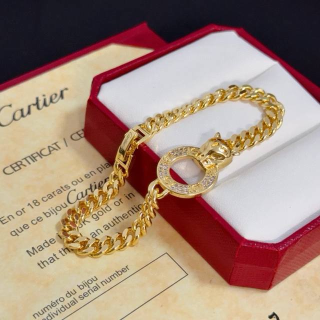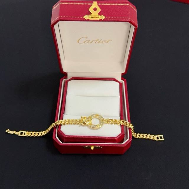 Cartier's panther head diamond bracelet, a high-end custom version, features diamond-set craftsmanship and V-gold material. Its classic and stylish design reshapes the aesthetics of love with sharp lines! Breaking with convention, the diamond-set design creates a sense of luxury. Love should remain pure without extravagance. Cartier is beloved by celebrities and influencers. The panther series bracelet is a timeless classic, perfect for men and women of all ages! Wear it and you'll be the center of attention!