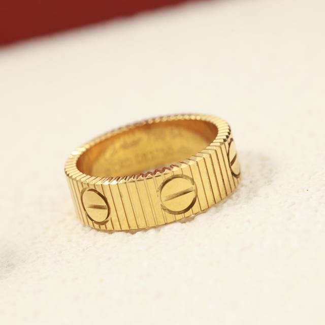 CNC version Cartier Love ring, latest Love ring, made of matte gold plated with 18K gold, thick gold that won't fade, original CNC machine cutting process! Sizes 6, 7, 8, and 9 available. A must-have! Original logo.