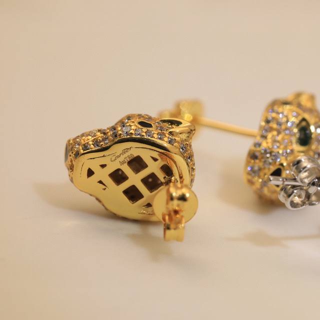 Exquisite Cartier Panther Head Earrings - The latest hot item! Cartier panther emerald stud earrings, a classic masterpiece from Cartier, timeless and legendary, always in fashion. Original custom-made 925 sterling silver earring posts + gold setting with high-carbon diamonds and emeralds, making the entire panther head incredibly lifelike, noble and elegant, exuding a powerful and majestic aura. The panther's ever-changing posture, proud and untamed, is full of spirit. The 3D effect is incredibly lifelike, with three colors in perfect harmony.