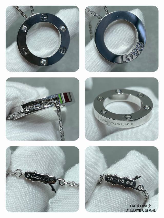 High-quality Cartier Love Three-Diamond Necklace (V Gold Plated, Cnc) - Real Photos, High-end Customization, Examine the Chain, Engraving, and Craftsmanship. Original replica, easily found in boutiques. German import, luxurious and high-end, 1:1 logo plaque, excellent value for money, perfect for personal use or as a gift.