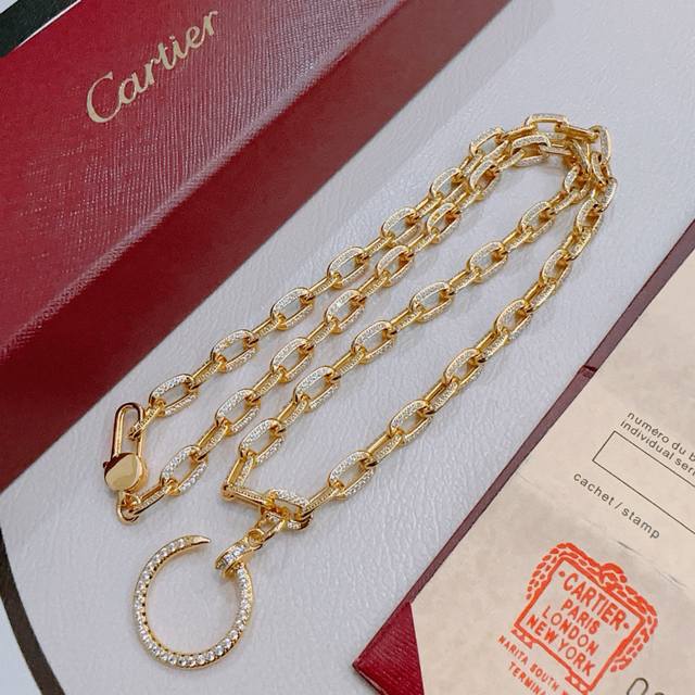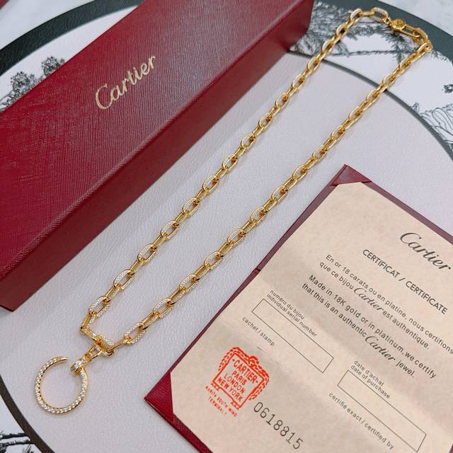 New Cartier necklace with diamonds, V gold series, perfect condition, unparalleled details, the unique color is absolutely impeccable, adorned with a classic ring design, simple yet elegant and eye-catching. The V gold handcrafted combination enhances your complexion, making it elegant and charming on the wrist. Unisex style.